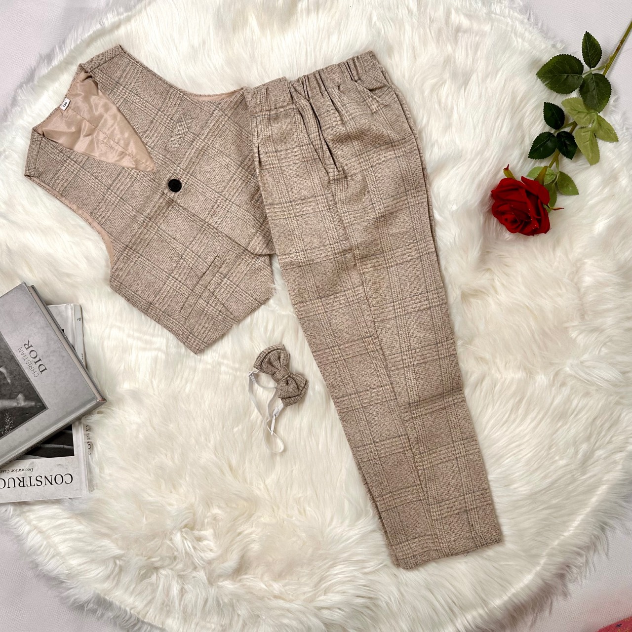 Khaki Plaid Elegant Formal 5 Pieces boys suits